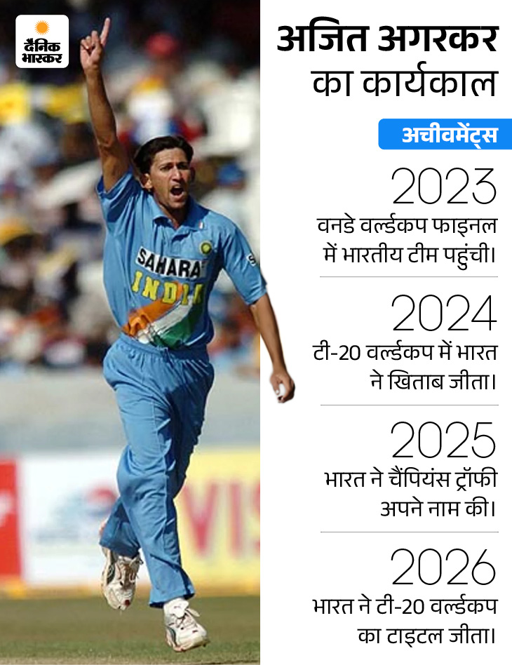 - 2025 में अगरकर को पहले ही एक साल का एक्सटेंशन मिल चुका है, अब उनका कार्यकाल 2027 तक के लिए रिन्यू किया जा रहा है।