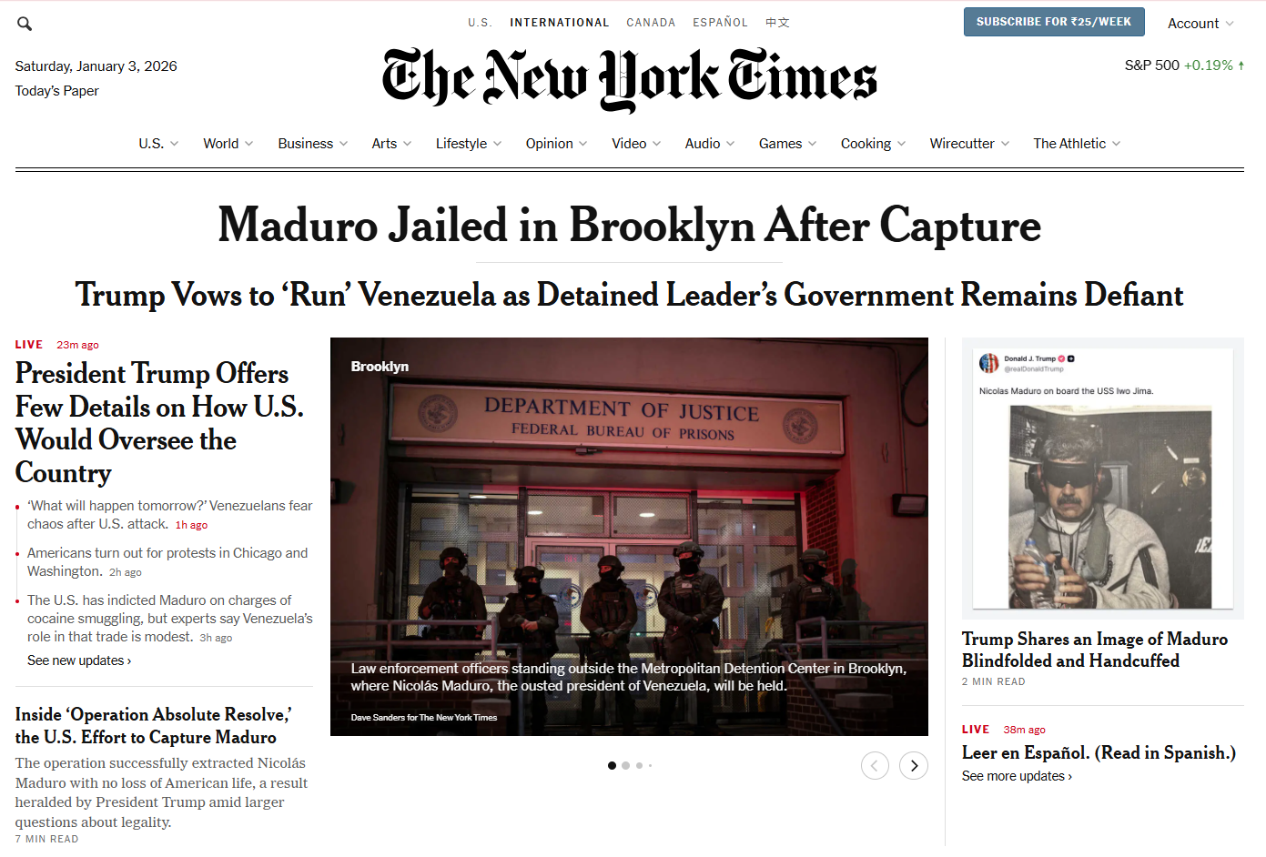 अमेरिका- न्यूयॉर्क टाइम्स: अमेरिका का ऑपरेशन एब्सोल्यूट रिजॉल्व, घर में घुसकर राष्ट्रपति को उठाया