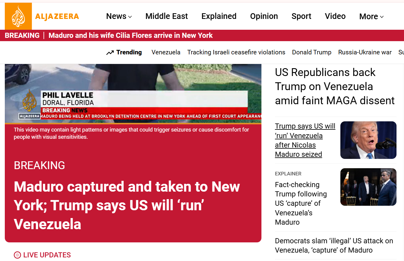 कतर- अल जजीरा: रिपब्लिकन पार्टी बोली- ट्रम्प को गर्व होना चाहिए, वे वेनेजुएला को आजाद करा रहे