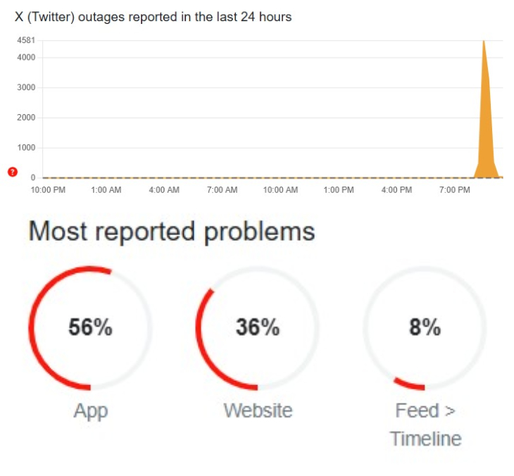 भारत में रात करीब 8:17 बजे से यूजर्स ने प्लेटफॉर्म में गड़बड़ी की शिकायत शुरू हुईं। शुरुआत में करीब 1,200 लोगों ने रिपोर्ट किया, लेकिन महज 15 मिनट के भीतर यानी 8:30 बजे तक यह संख्या बढ़कर 4,500 के पार पहुंच गई।